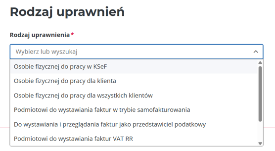 - Individual to work in KSeF (Osobie fizycznej do pracy w KSeF) – used to grant permissions to an individual (e.g. a representative or an employee)