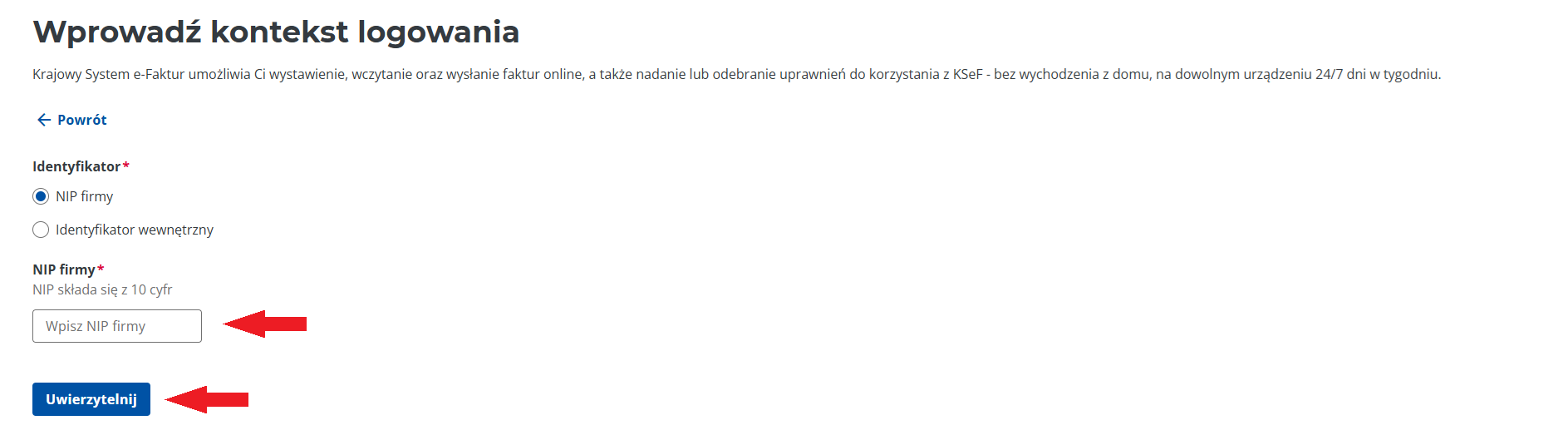5. Select “NIP firmy” and enter your company’s NIP.