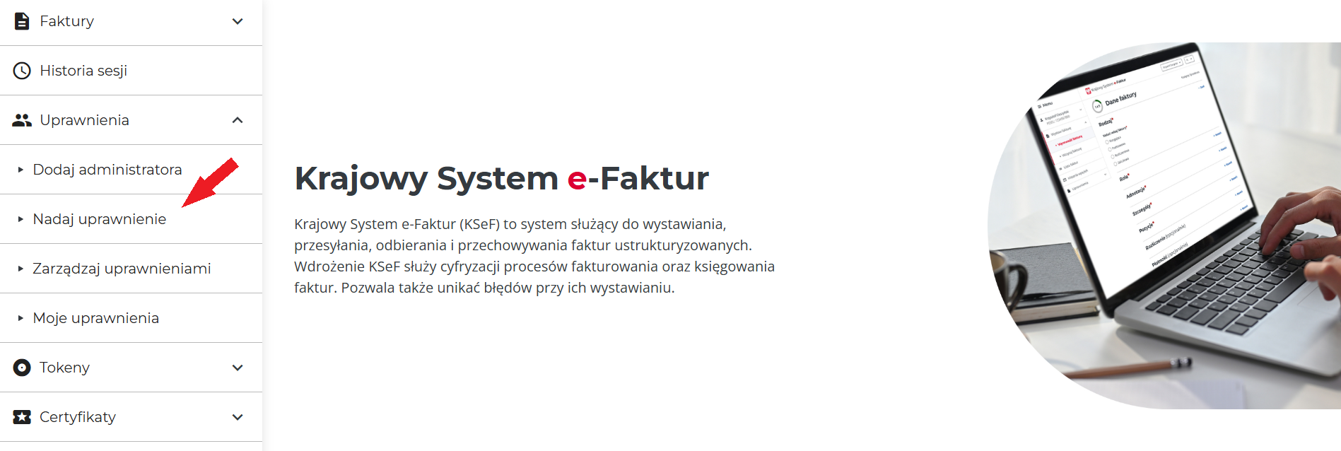 3. Click the option “Uwierzytelnij się w Krajowym Systemie e-Faktur” („Authenticate in KSeF”).